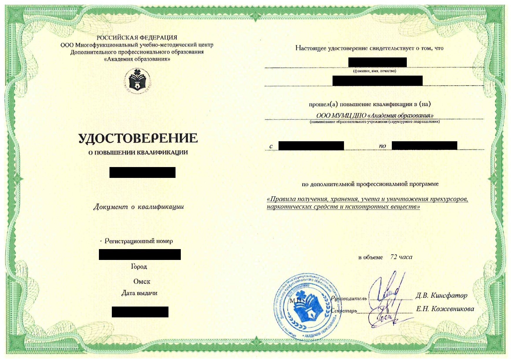 Повышение квалификации правила получения, хранения, учета и уничтожения прекурсоров, наркотических средств и психотропных веществ в Хабаровске
